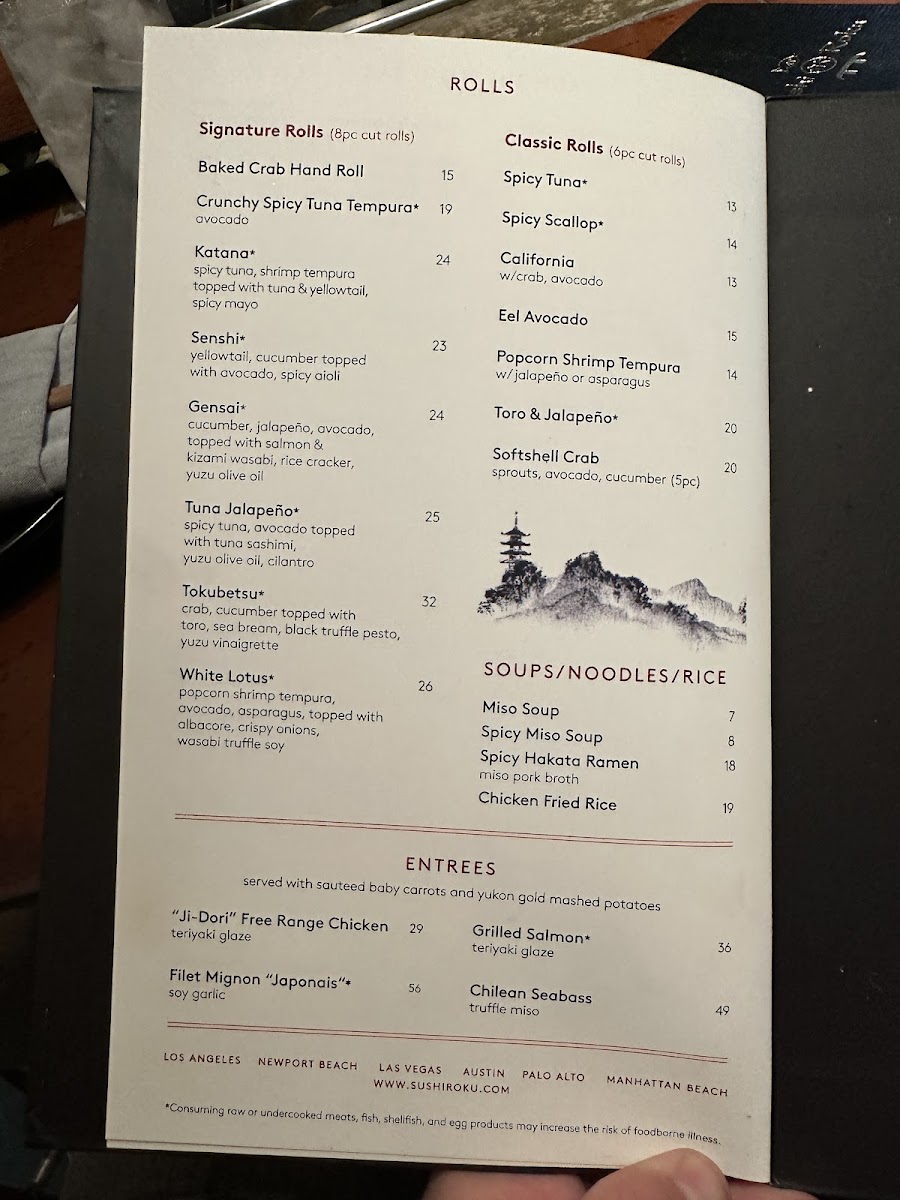 Welcome to Sushi Roku Las Vegas, a gem nestled in the bustling Forum Shops at Caesars Palace. This sushi haven blends traditional Japanese flavors with contemporary flair, providing an unforgettable dining experience. As you peruse the menu, you're greeted by innovative offerings like the A5 Wagyu Ishiyaki, a melt-in-your-mouth delight, and a variety of tantalizing rolls, including the crowd-pleasing Spicy Tuna and Soft Shell Crab.